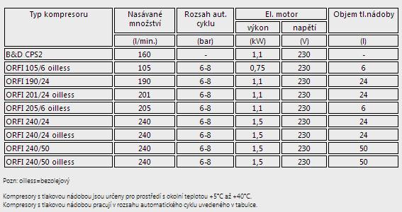 • kompresory s tlakovými nádobami sú vybavené tlakovým spínačom zaisťujúcim plne automatickú prevádzku