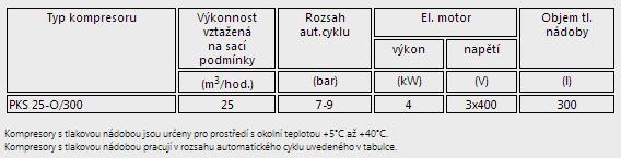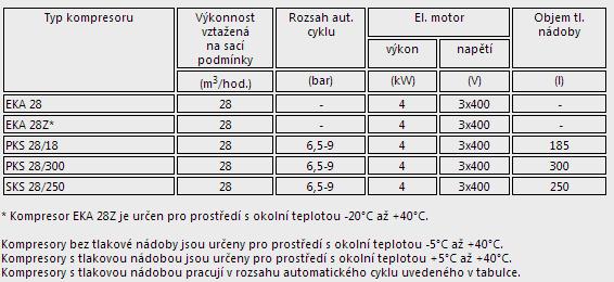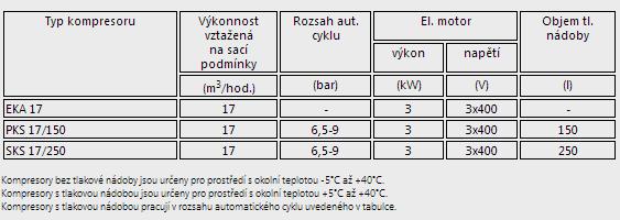 kompresor je možné dodať ako celok s tlakovou nádobou o objeme 300l alebo 500l, poprípade kondenzačný sušičkou TRB + 3 ° C